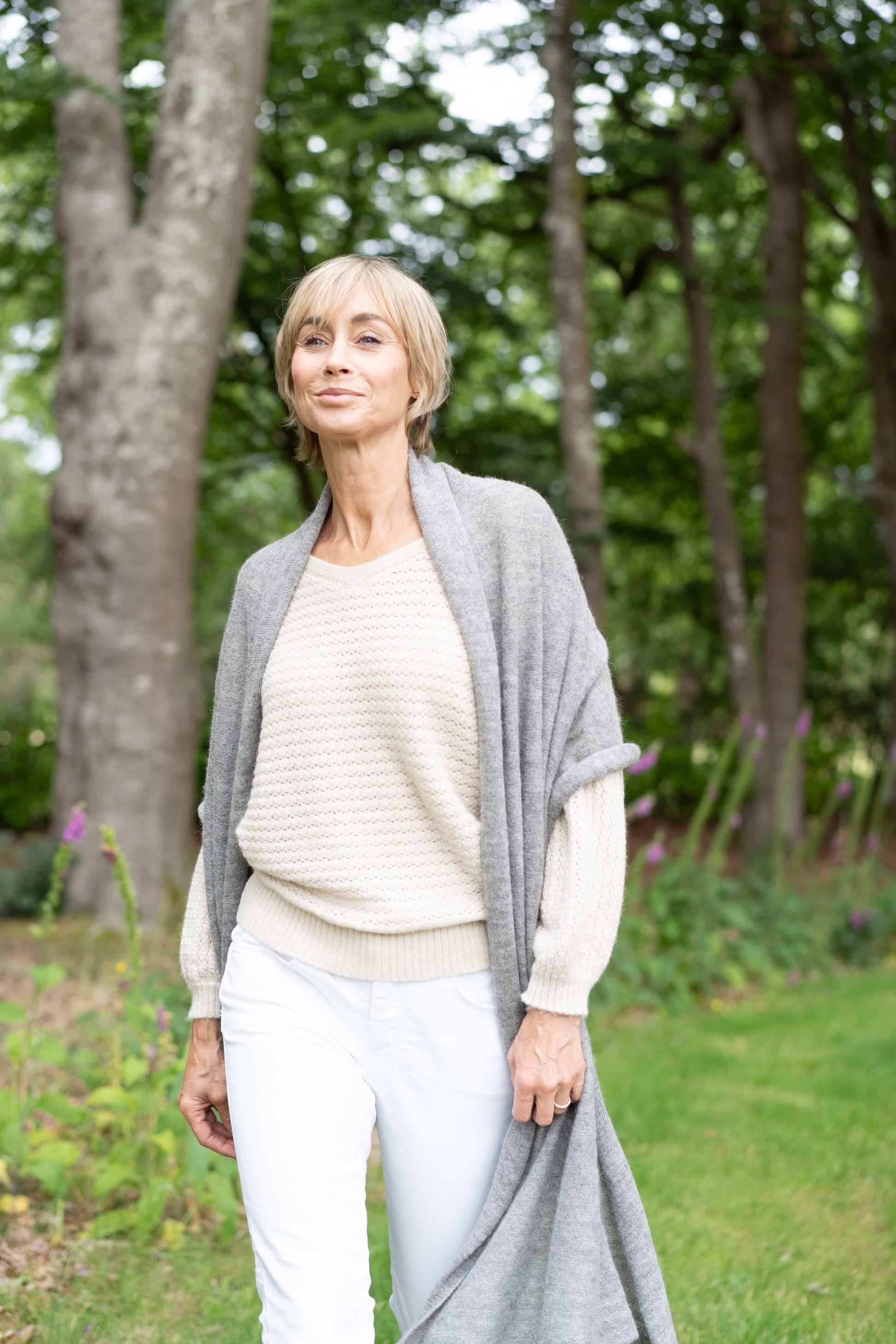 This exquisite alpaca wrap is carefully crafted using our own 100% UK Alpaca Yarn, without the use of dyes or chemicals. Blending delicate shades of lights and greys from our 2024 shear, this wrap features a combination of huacaya and suri breeds. Its lightweight design makes it incredibly versatile, ideal for transitioning seasons and travel.